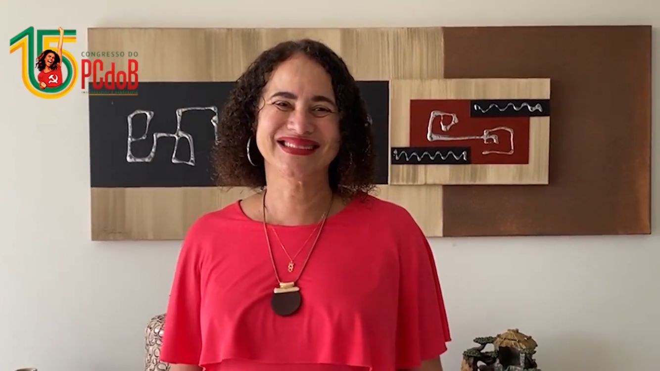 A presidenta nacional do PCdoB, Luciana Santos, durante a conferência estadual do partido em Pernambuco. Foto: Elimar Caranguejo